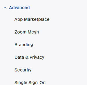 Login to zoom admin console. Navigate to Advanced -> App marketplace