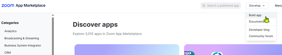 On the top right, click on Develop -> Build app