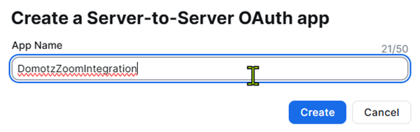 A new window opens, select “Server to Server OAuthApp” and click on create