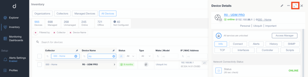 - Go to collector Devices List or Inventory and click the device you want to configure.
